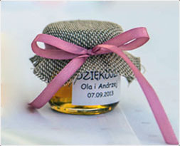 Podziękowania dla gości weselnych stały się już tradycją, o której nie należy zapominać. Oferujemy Państwu wykonanie podziękowania w formie MIODKA WESELNEGO. Pojemność mini słoiczków to 40ml wypełnionych świeżym płynnym miodem